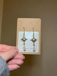 Golden Star Rose Quartz Earrings